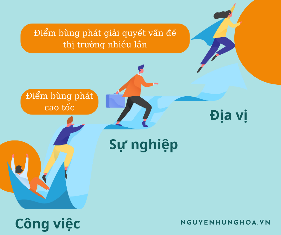 Công việc làm thời gian đủ lâu dài ==> Bạn sẽ thấy vấn đề, bạn nghiên cứu cách Giải quyết ==> Có điểm bùng phát là Bạn giải quyết vấn đề nhức nhối ==> Bạn có SỰ NGHIỆP